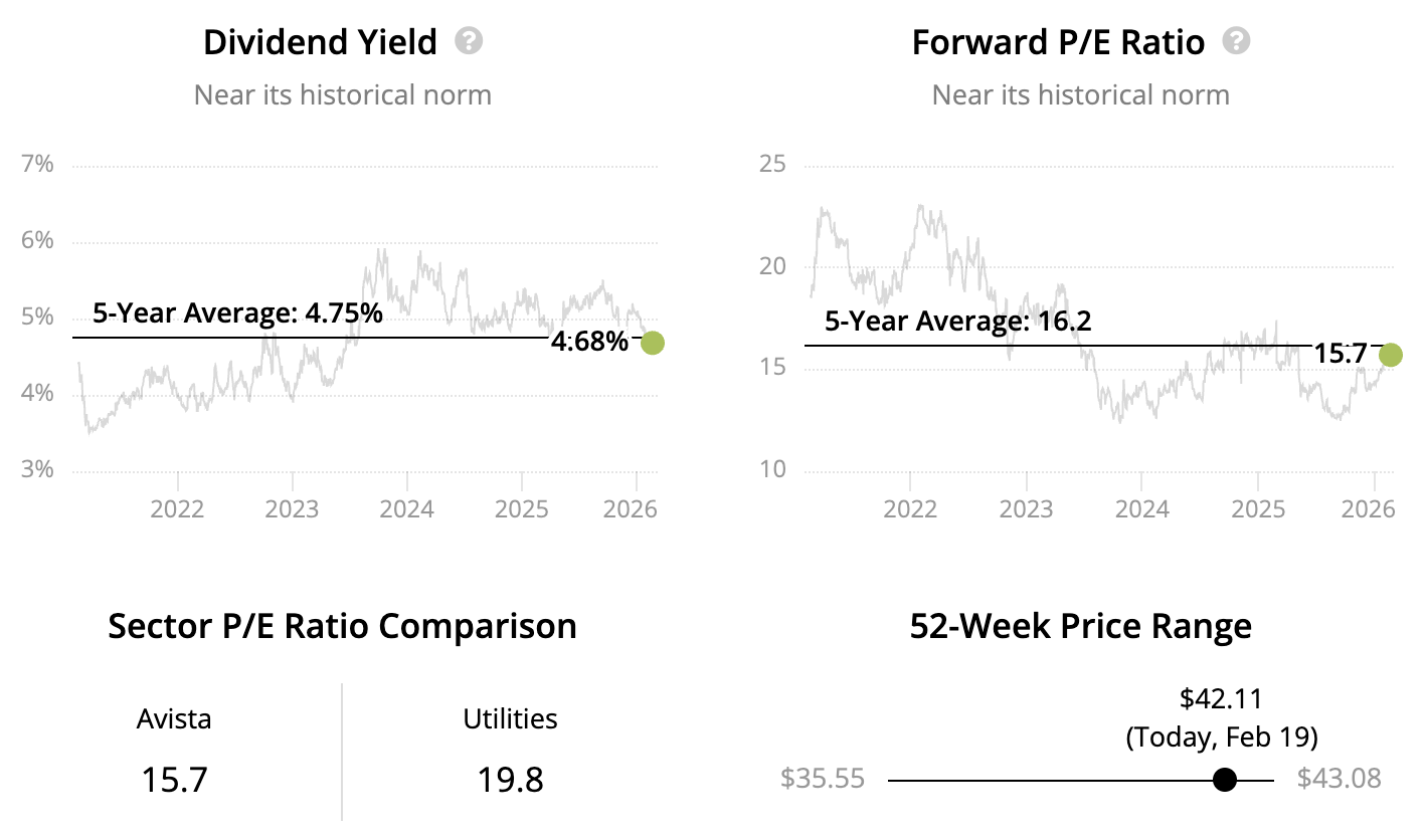 Despite these strengths, Avista trades at a discount to the broader utilities sector. This likely reflects its smaller size, slower growth rate, and investor concerns over wildfire risk, although these concerns may be overstated.