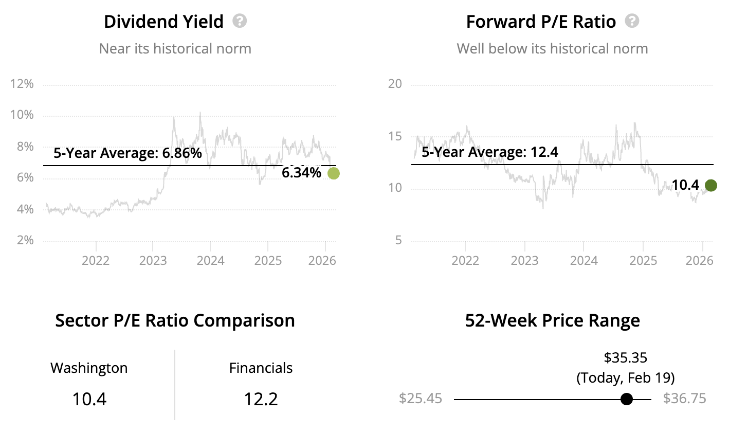 With a dividend yield north of 6% that has some support behind it, a conservative lending approach, and steady fee revenue from wealth management operations, Washington Trust offers potential for income-focused investors who can stomach short-term volatility and believe in a longer-term margin recovery.