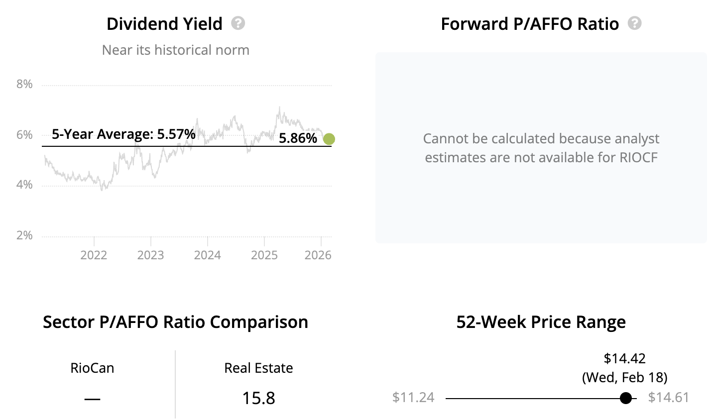 RioCan (RIOCF), one of Canada's largest REITs, owns over 150 shopping centers and mixed-use properties located in large, high-density markets such as Toronto, Ottawa, and Calgary.