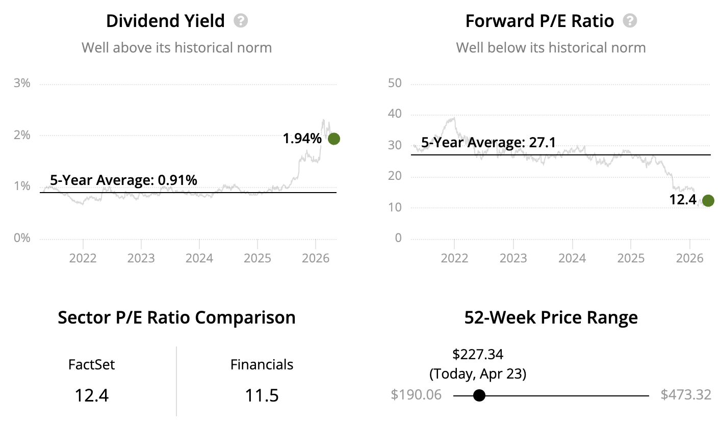 Founded in 1978, FactSet sells subscription-based financial data, analytics, and workflow tools to investment professionals. Its platform helps clients research securities, monitor markets, manage portfolios, measure risk and performance, and integrate data through APIs and cloud delivery.
