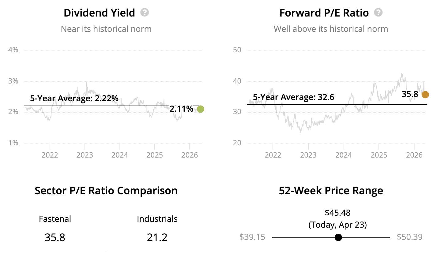 Fastenal, founded in 1967, distributes industrial and construction supplies, especially fasteners, safety products, tools, and maintenance items. It differentiates itself with dense local fulfillment, vending and on-site inventory programs, and integrated supply solutions for manufacturers and contractors.