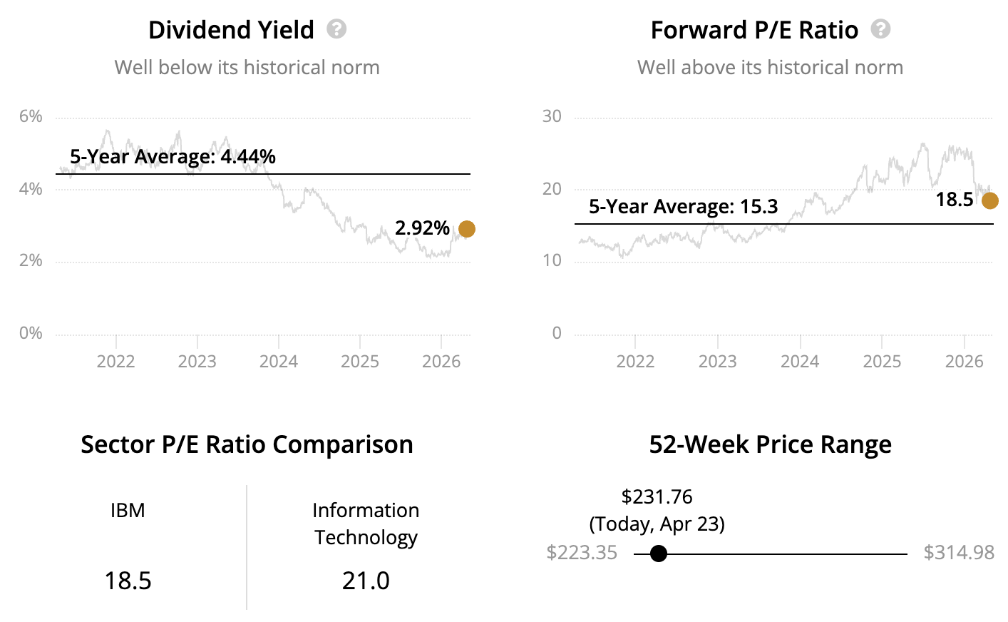 IBM, founded in 1911, provides enterprise software, consulting, and infrastructure-focused services with an emphasis on hybrid cloud and AI-enabled solutions. The company’s software portfolio includes middleware and automation tools, and its consulting arm helps large organizations modernize systems, manage data, and improve cybersecurity.