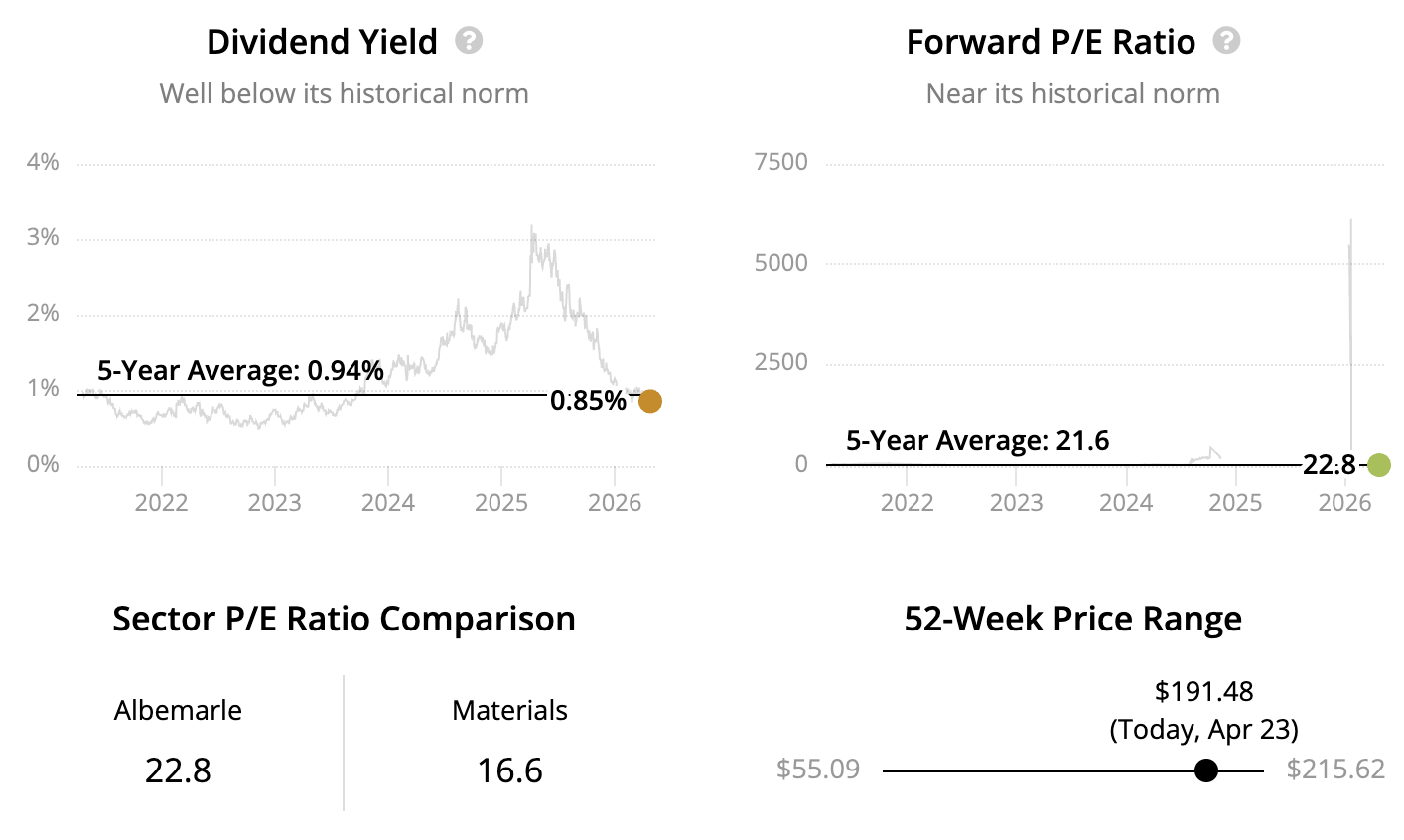 Albemarle, founded in 1887, is a specialty chemicals company best known as a major producer of lithium used in electric vehicle and energy storage batteries. It also operates a bromine specialties business that supplies chemicals used in fire safety and other industrial applications.