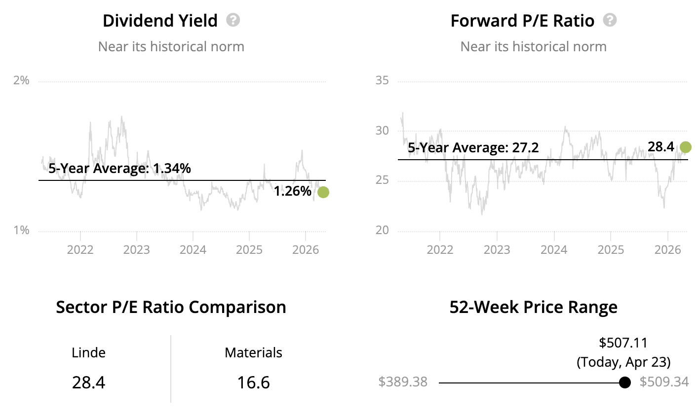 Linde, founded in 1879, supplies industrial gases such as oxygen, nitrogen, hydrogen, and carbon dioxide to customers across healthcare, manufacturing, electronics, and energy. Many gas volumes are delivered through long-term contracts and on-site plants, which tends to support stable, recurring revenue.