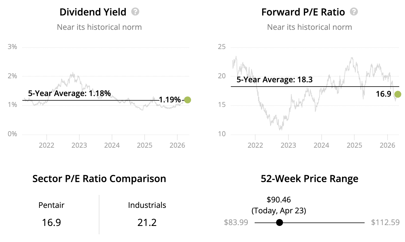 Pentair was founded in 1966 and makes water-related equipment such as pumps, filtration systems, pool products, and flow control solutions. The business serves residential and commercial customers and benefits from recurring demand for pool maintenance, water quality, and fluid management.