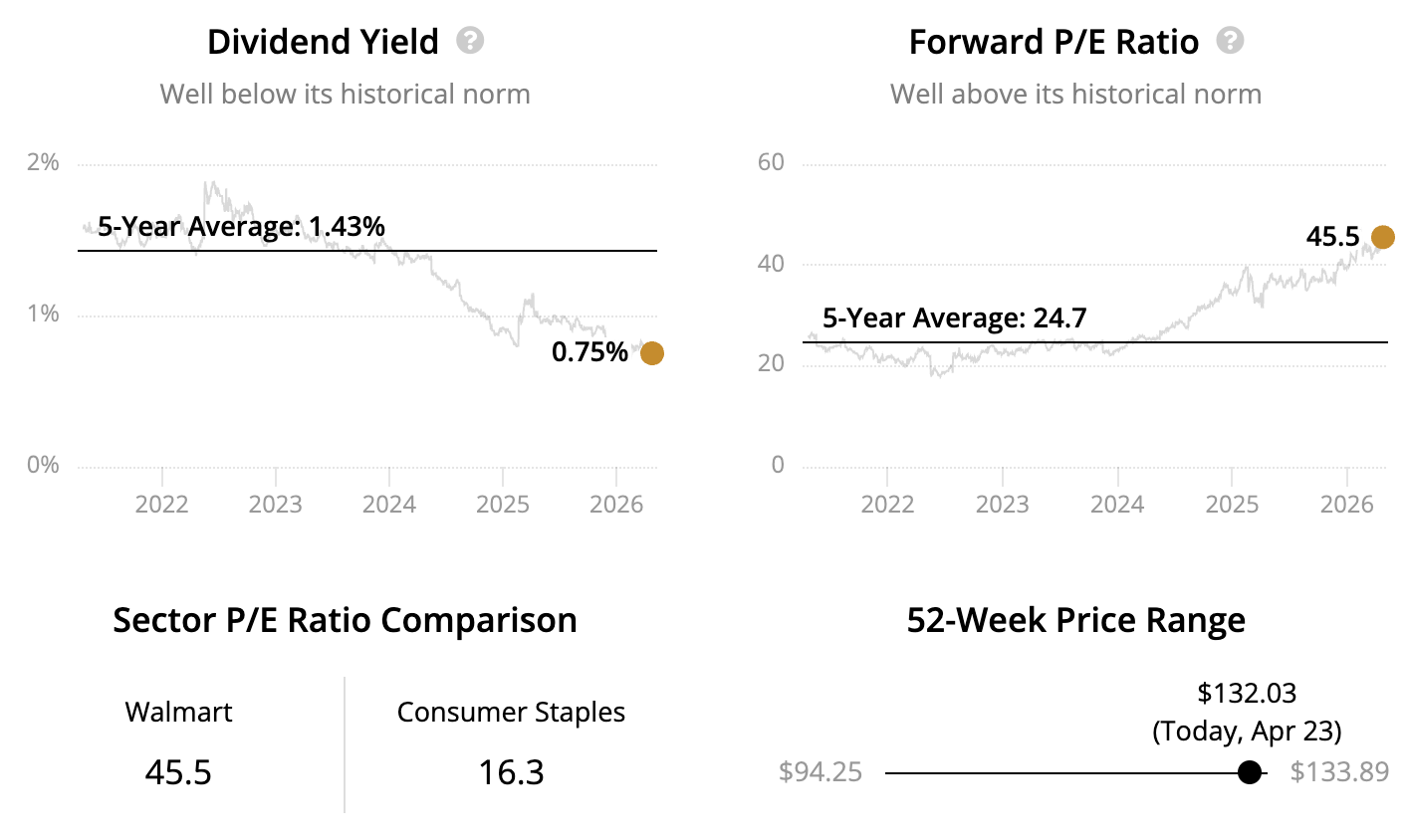 With roots tracing back to 1945, Walmart is the world's largest retailer, anchored by groceries and everyday essentials sold through supercenters, neighborhood stores, and e-commerce. It also operates Sam's Club and has expanded higher-margin businesses such as advertising, delivery, and membership services.