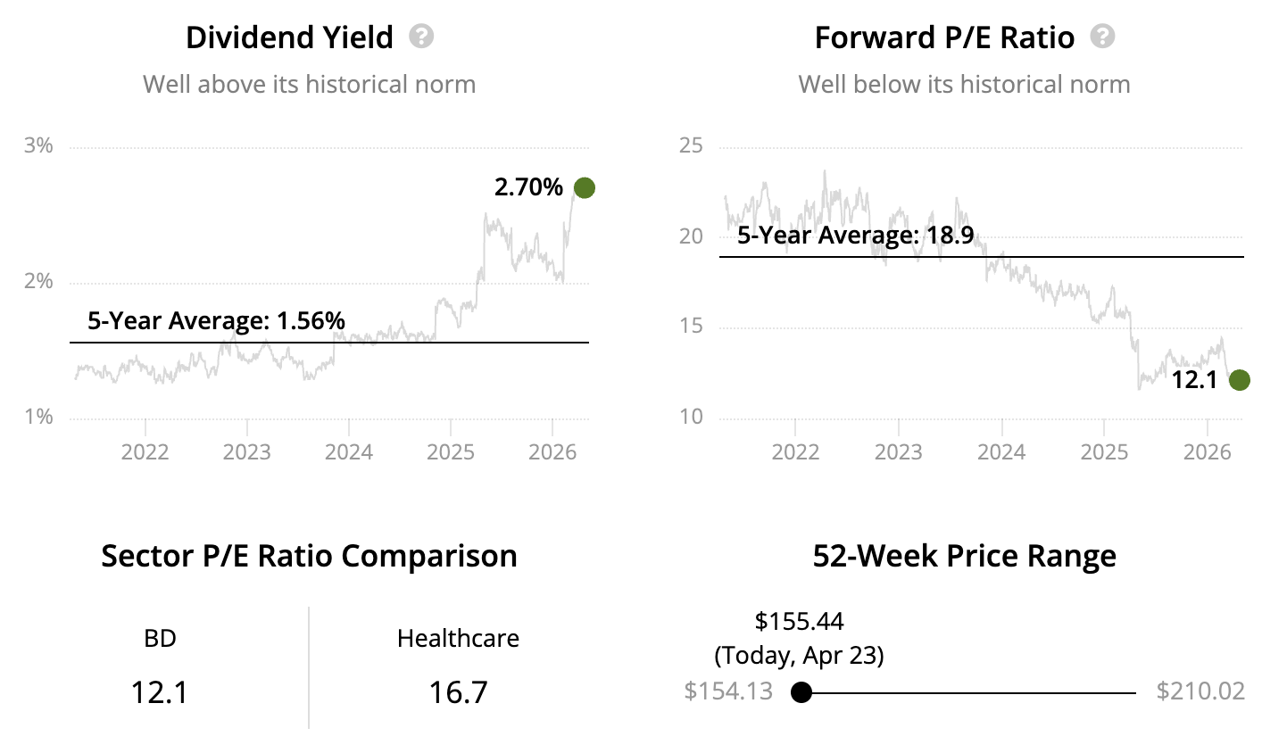 Founded in 1897, Becton Dickinson supplies a wide range of medical devices and consumables used in hospitals, clinics, and laboratories. Its portfolio includes syringes, needles, infusion systems, specimen collection tools, and diagnostic products, many of which are recurring-use items.