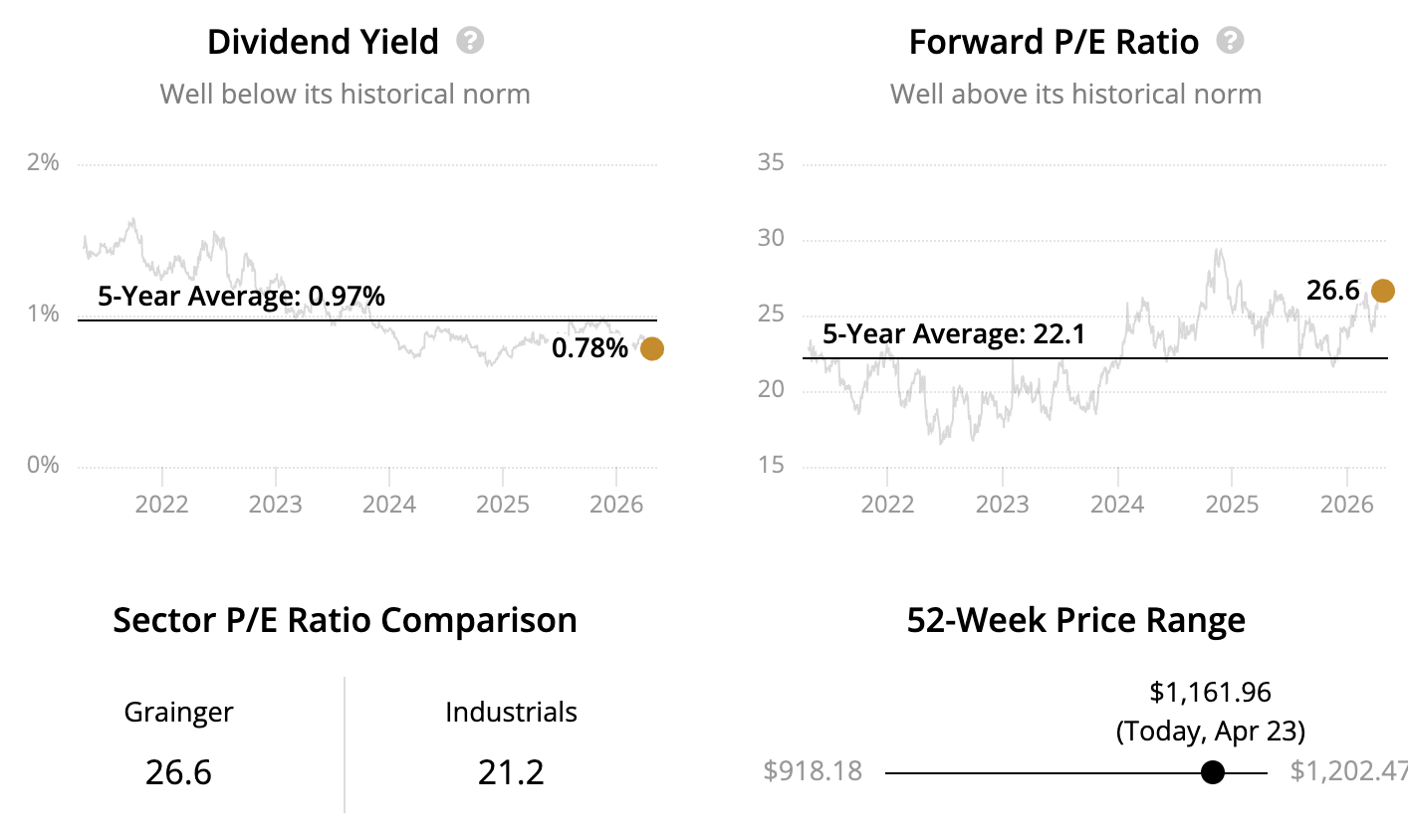 Established in 1927, W.W. Grainger distributes maintenance, repair, and operating products to businesses and institutions. It benefits from broad product availability, reliable fulfillment, and a strong mix of online and branch distribution serving diverse end markets.
