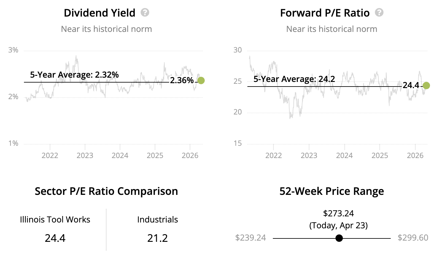 Formed in 1912, Illinois Tool Works (ITW) is a diversified industrial manufacturer selling specialized products into categories such as automotive components, food equipment, welding, adhesives, and construction products. The company focuses on high-margin niche positions and operational discipline across its portfolio.