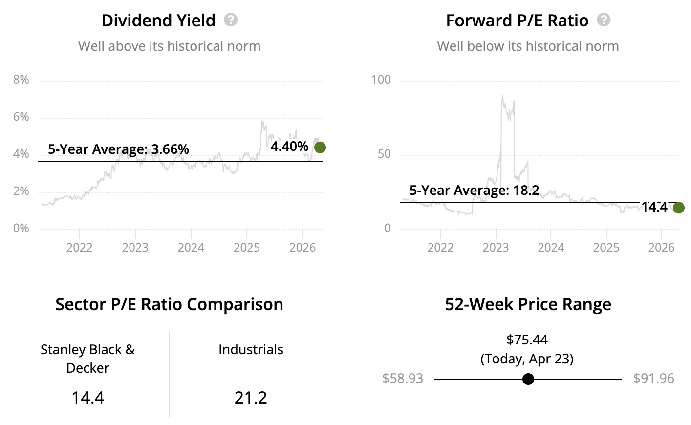 Founded in 1843, Stanley Black & Decker sells power tools, hand tools, and outdoor products under brands such as DeWalt, Craftsman, and Black+Decker. Demand is influenced by construction activity and consumer DIY spending, while the company also has a smaller industrial-focused business.