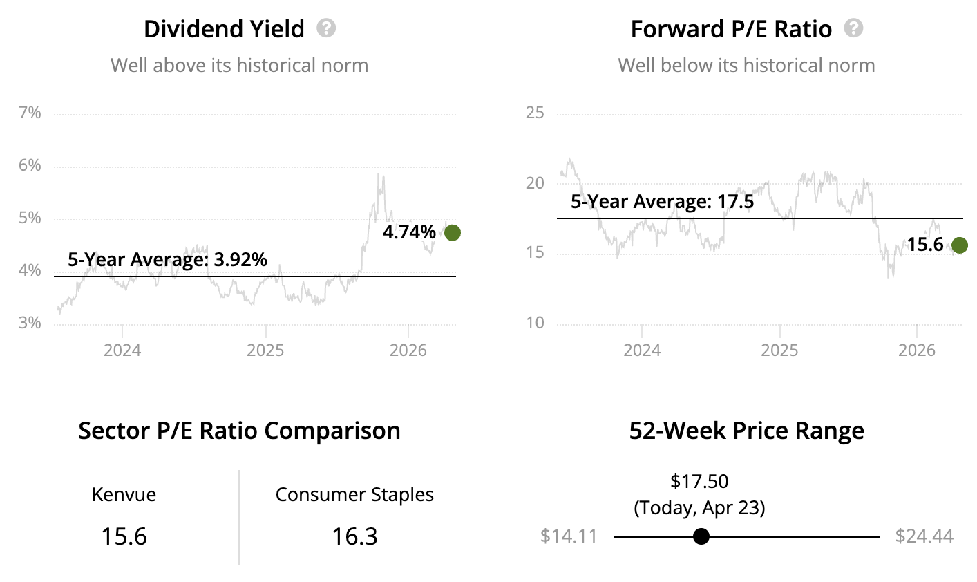Kenvue was separated from Johnson & Johnson in 2022 and sells consumer health products, including Tylenol, Listerine, Band-Aid, and Neutrogena. The firm is in the process of being acquired by fellow dividend aristocrat Kimberly Clark.