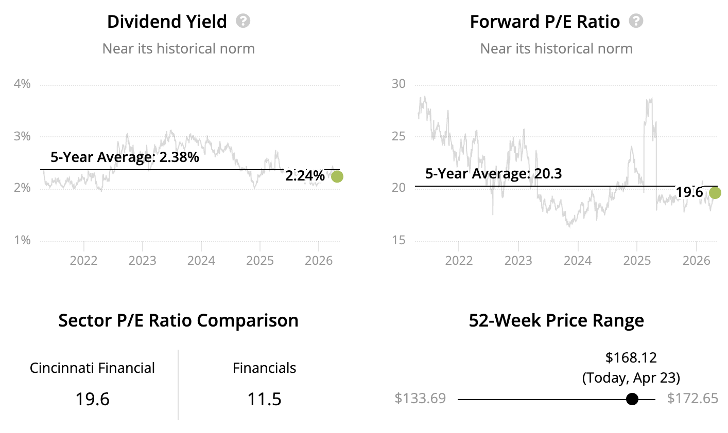 Established in 1950, Cincinnati Financial is a property and casualty insurer selling commercial and personal coverage, plus surety and life insurance products. Earnings come from underwriting results and investment income, with performance influenced by catastrophe losses and market conditions.