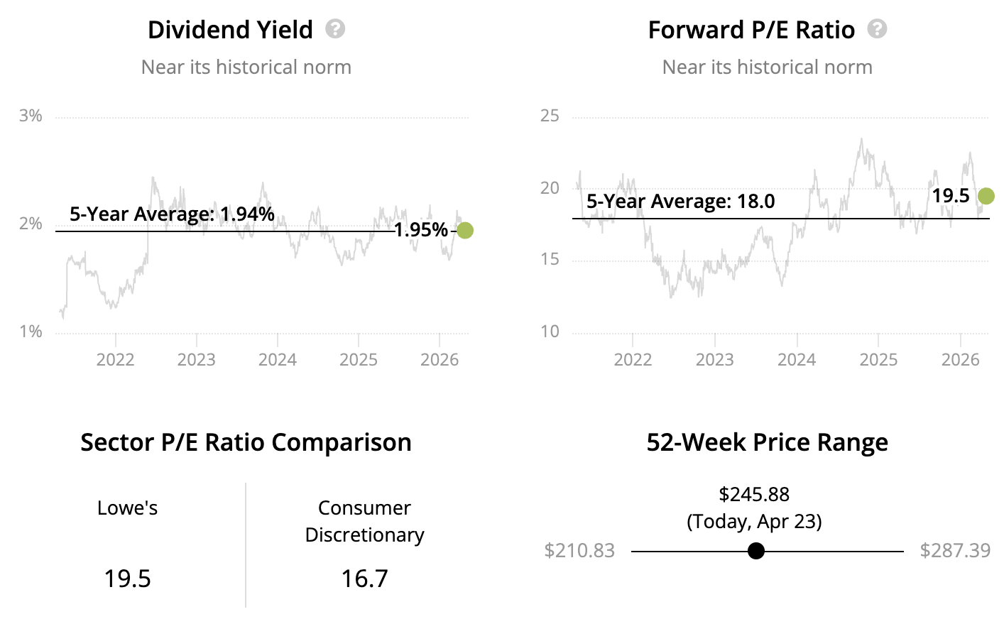 Founded in 1921, Lowe's is a leading home improvement retailer selling building materials, tools, appliances, and home goods to homeowners and professionals. It generates revenue through a large store base and digital channels, with demand tied to home repair, remodeling, and construction activity.