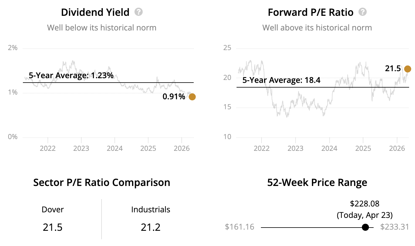 Dover, established in 1947, is a diversified industrial company selling equipment and components across areas such as fueling and convenience retail systems, fluid handling, refrigeration, identification and coding, and engineered products. It operates through multiple specialized platforms that serve a wide range of industrial end markets.